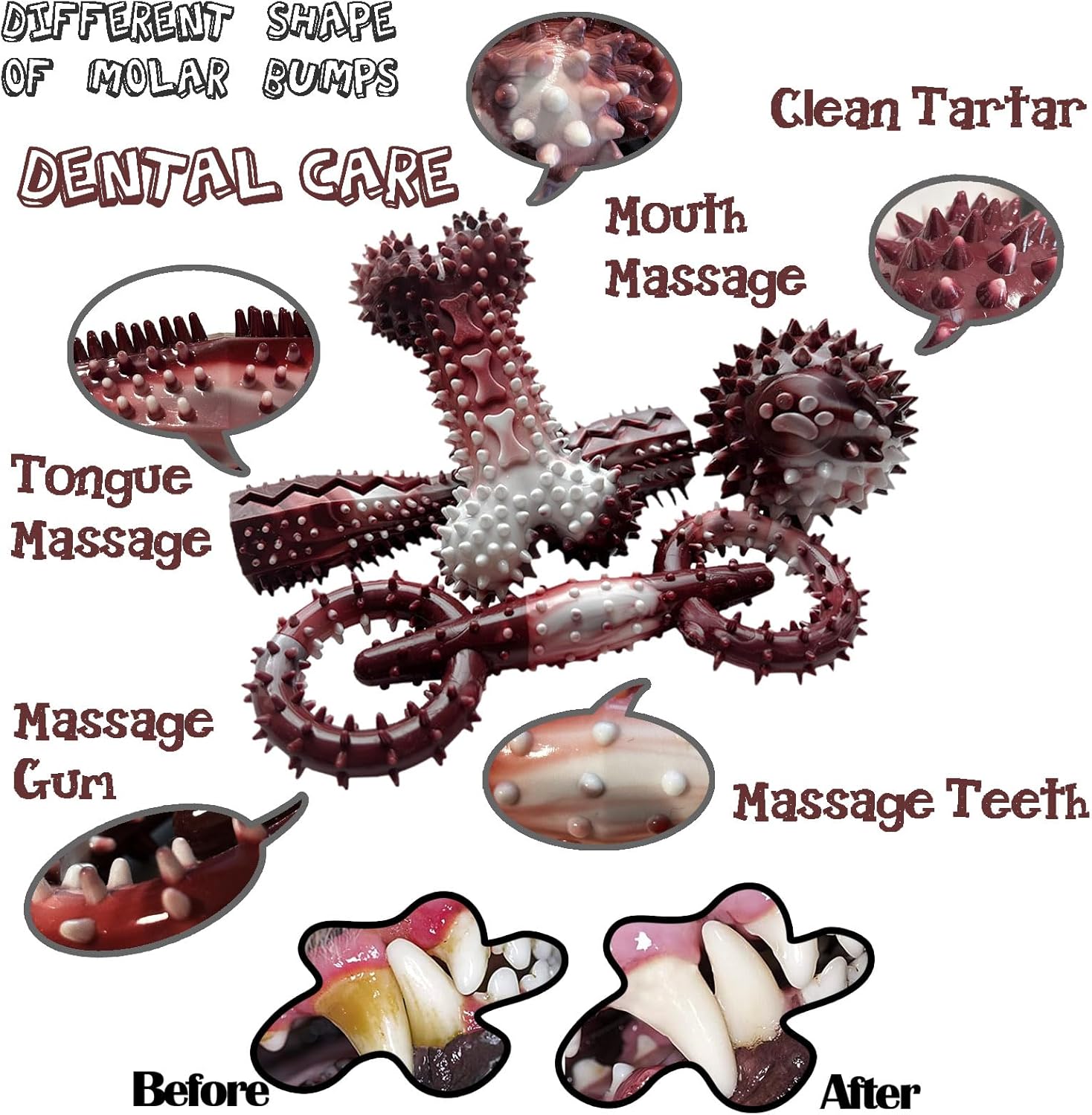 - Safe and Effective Puppy Teeth Cleaning:Made from 100% non-toxic natural rubber, these puppy chew toys are safe for your pet to chew on. Molar bulges around the toy , which can effectively clean the dog’s teeth and relieve discomfort during teething for puppie.The different unique designs feature molar bumps to clean various teeth, massage gums, and control tartar and plaque.