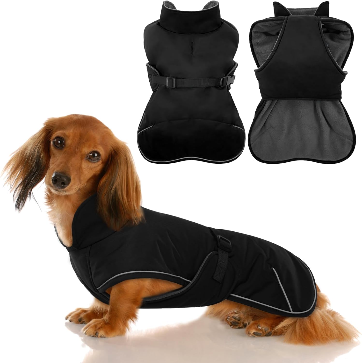 • Reflective Dog Jacket: The dachshund coats is designed with reflective strips, high-visibility reflective stripes, making your dog more eye-catching, ensuring safety during night walks and outdoor activities